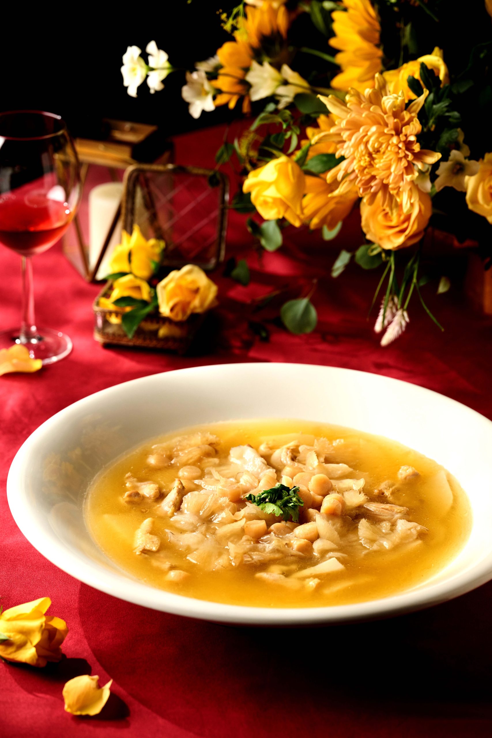 湯頭融入上湯精隨,將食材一一洗淨川燙,伴隨竹笙與金華火腿的提味,味道淡雅無負擔,是道清爽與兼顧健康的羹品選擇。