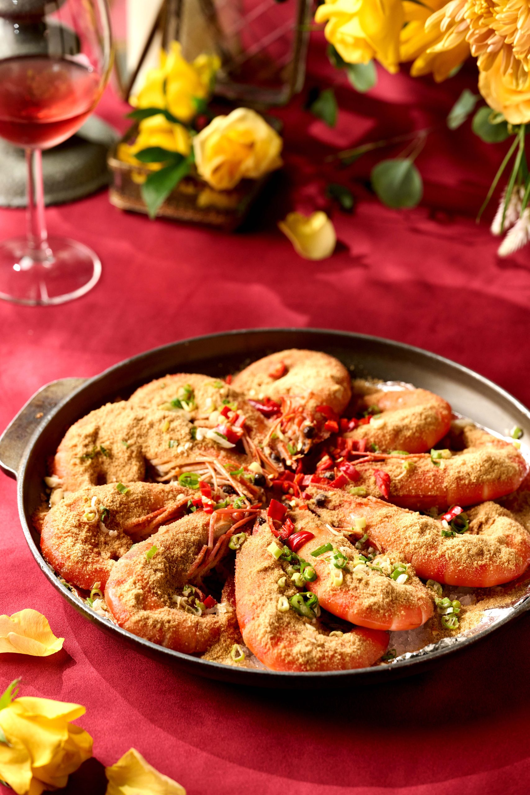 以粗鹽鋪底,使用銅盤熱傳導,將肥碩大草蝦(6P)煮熟,留下Q彈肥美蝦味,再以胡椒鹽提味,一盤美味大方的蝦料理立即上桌。更是凸顯食材的新鮮!